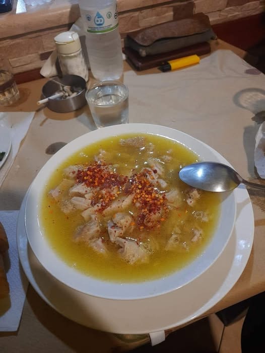 Τελικά φάγαμε όλοι μοσχαροκεφαλή ψιλοκομμένη με μπούκοβο και οι φίλοι μου έμειναν ενθουσιασμένοι από την ελληνική κρεατόσουπα: