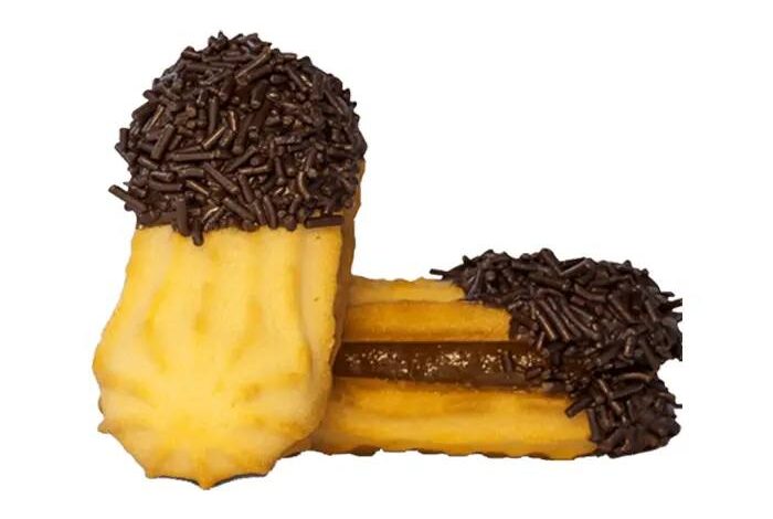 Γεμίζουμε μια σακούλα ζαχαροπλαστικής (ή αυτοσχέδια σακούλα) με τη ζύμη μας. Φτιάχνουμε μπαστουνάκια με ανάγλυφη επιφάνεια, χάρη στη μύτη αστέρι.
