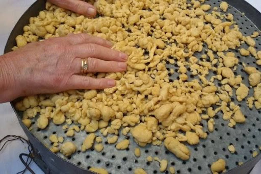 Τρίβουμε κάθε «βραχάκι» στο κόσκινο.